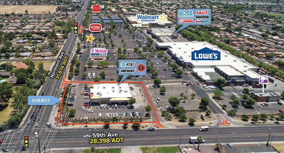 - Hard Corner Signalized Location at the High Traffic Intersection of Northern Ave & 59th Avenue (over 60,000 Combined Cars/Day)