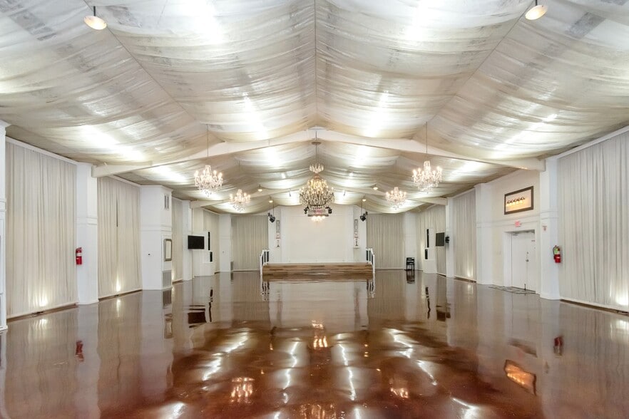 Featuring an expansive open floor plan designed to accommodate large gatherings, finished flooring, decorative lighting, and a full kitchen with dedicated service areas. The layout allows for immediate continued use as an event facility while also offering easy reconfiguration for alternative commercial applications. Th property’s un-zoned status provides exceptional flexibility for owner-users or investors seeking warehouse, distribution, light industrial, office, hospitality, recreational, or mixed-use potential without rezoning delays.