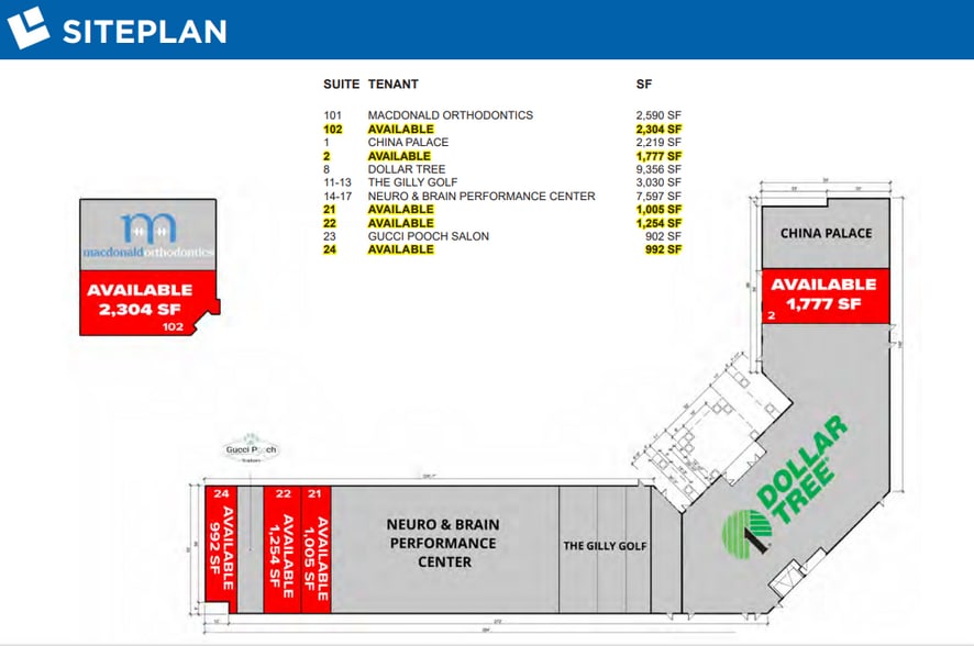 | Superficie totale disponible | 7 332 pi² | Propriétés du centre | 2 |