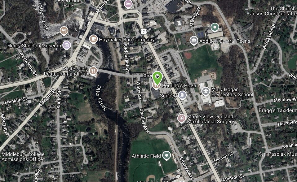 Centre commercial de quartier de 18 000 pieds carrés. Situé à mi-chemin entre Burlington et Rutland sur la route 7, la principale artère de la ville de Middlebury, au Vermont.