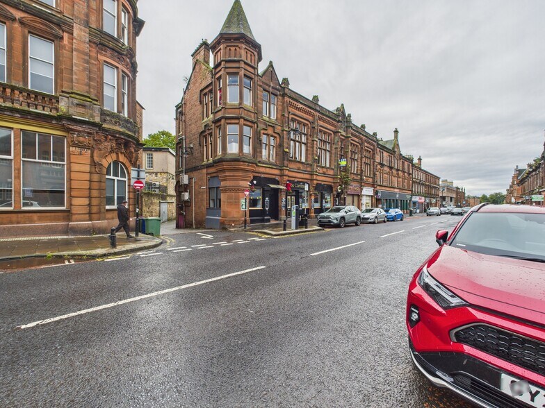 58 John Finnie Street presents a unique opportunity to establish a place of business in a major town centre corridor of Kilmarnock with a spacious interior and versatile use cases. A Scots Baronial-style octagonal turret, paired with irreplicable red sandstone brickwork and a slate roof, asserts a grand presence along John Finnie Street. This attractive Category B listed building comes with Class 11 permission, and the floors are available in whole or in part, affording immense flexibility for new occupants. The 3,284-square-foot first floor comprises a bar/nightclub area, WC facilities, stores, and offices, and the landlord is willing to remove the bar should it not suit the new tenant. The second floor spans 3,024 square feet and includes WC facilities, stores, and a dance floor with an arched, vaulted ceiling and custom molding. Additionally, a ground-floor entrance space will be included as a common space. John Finnie Street is a prominent secondary town centre location, with a diverse mix of retail, food, office, and licensed trade uses that generate traffic throughout the day. Access is seamless with on- and off-street car parking available, and Kilmarnock Station is only a five-minute walk away. New occupants will also benefit from Kilmarnock’s aggressive regeneration initiatives, as its town centre masterplan recently hit a significant milestone with £3.2 million awarded from Transport Scotland in late 2025. This grant will accelerate the transformation of a former parking garage located just steps from 58 John Finnie Street. The plans include a performance amphitheatre, dining seats adjacent to Foregate Shops, urban benches, green space improvements, and an Active Mobility Hub to promote physical activity, sustainable travel, and help create a safe and welcoming gateway for the town. Become a core element of Kilmarnock’s evolving landscape and create a novel destination at the heart of town by letting 58 John Finnie Street today. Get in touch.