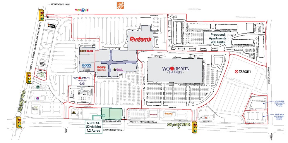 - Located at the Durand Avenue entrance to Regency Mall and new Woodman's Food Market.