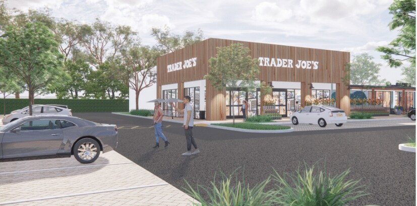 Existing prominent 4,608 SF space directly adjacent to Trader Joe's. Proposed new layout would consist of 2,874 SF with covered patio. Great for a brewery or restaurant.