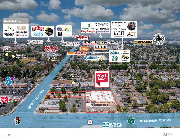 Located in a highly trafficked retail corridor at the signalized, hard-corner intersection of Lakewood Boulevard and South Street