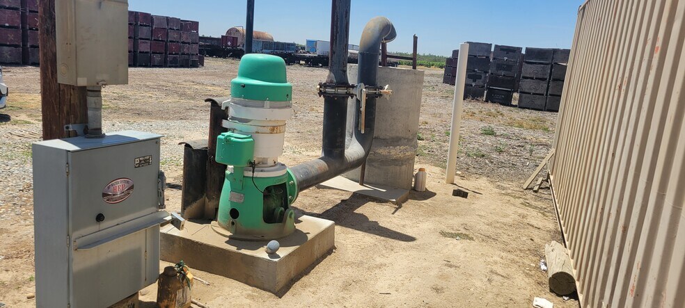 Mature Thompson vineyard with recently installed metal stakes and double crossarms. 30” bottom and 36” top crossarm. There are 4± acres of young Selma Pete vines and approximately 6 acres of open yard area. There is one 40’ x 80’ fully enclosed pole barn with asphalt floor, two roll up doors across from one another and one man door.