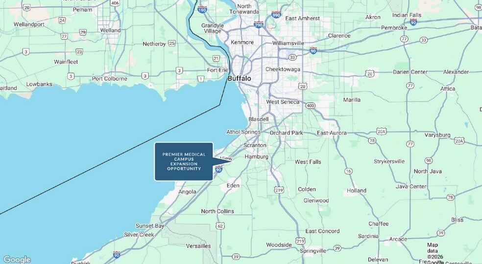 - High-visibility frontage along U.S. Route 20 (Southwestern Boulevard), a primary east-west artery serving Hamburg and Orchard Park.