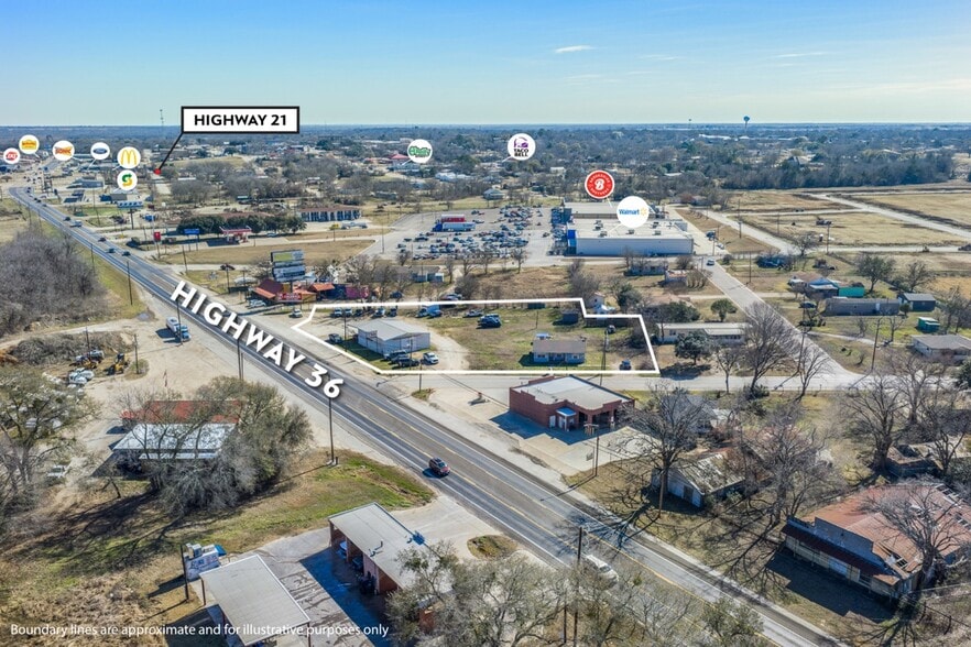 Prime 1.59-acre corner in Caldwell, TX at HWY 36 N & Sunny St, minutes to HWY 21. Includes 2BR/1BA home and 2,000 SF shop, both income-producing. High visibility with 33,566 AADT. City utilities. Ideal for investors or mixed-use in a growing corridor