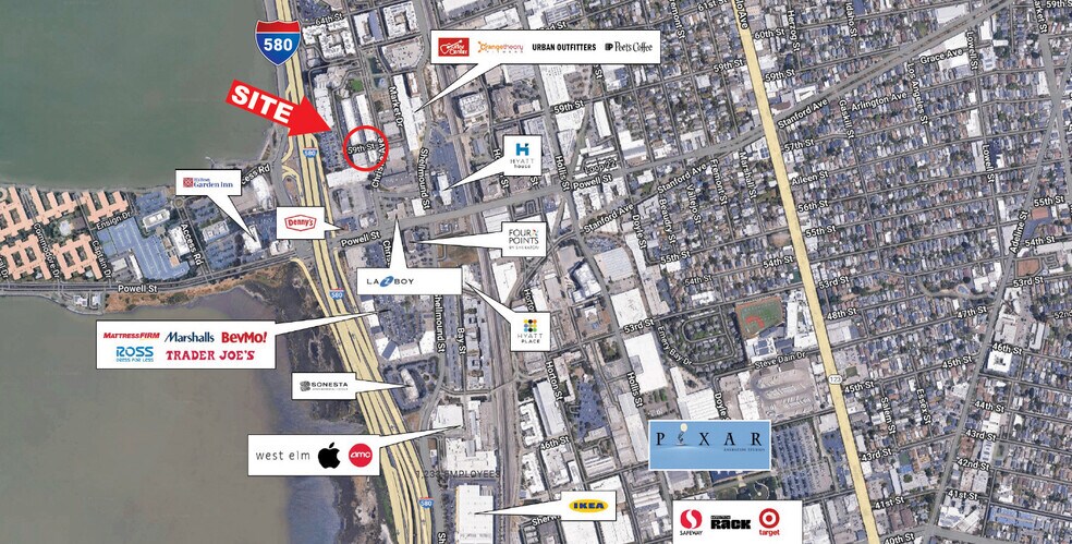 Located at the gateway to the East Bay in a unique urban setting thriving with retail, business and residential. • 4,700 SF available in 7,241 SF freestanding retail/office building • Great signage and visibility • Cotenency with busy FedEx Office • Located in busy district surrounded by thriving business, retail and residential. • Easily accessible via Powell Street exit offI-580/80 • Monument signage available