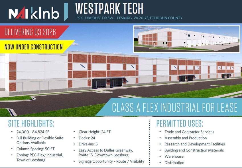 WESTPARK TECH 59 Clubhouse Dr SW 24 000–84 824 pi² d'espace disponible • Industriel • Leesburg, VA 20175