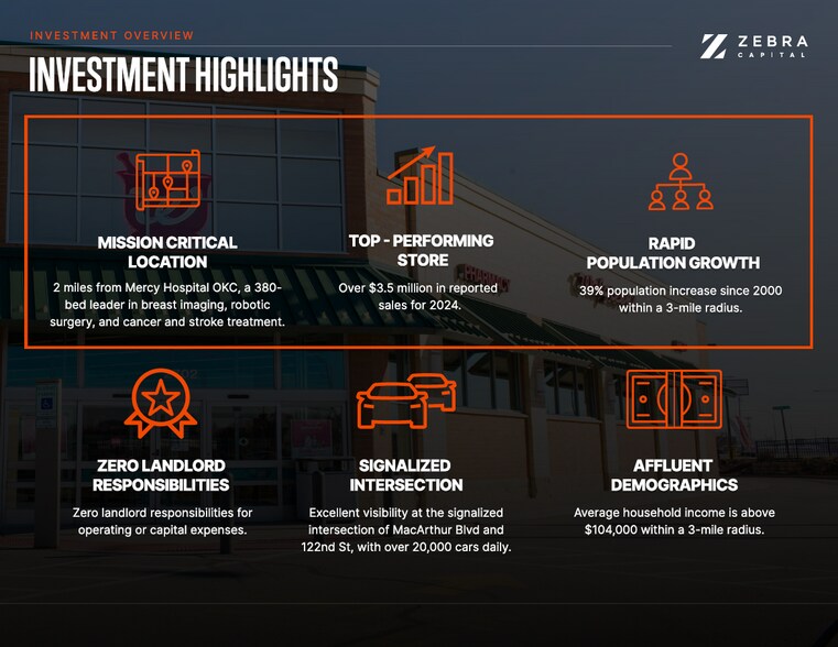 - MISSION CRITICAL LOCATION - 2 Miles from Mercy Hospital OKC, a 380 bed leader in breast imaging, robotic surgery and cancer center