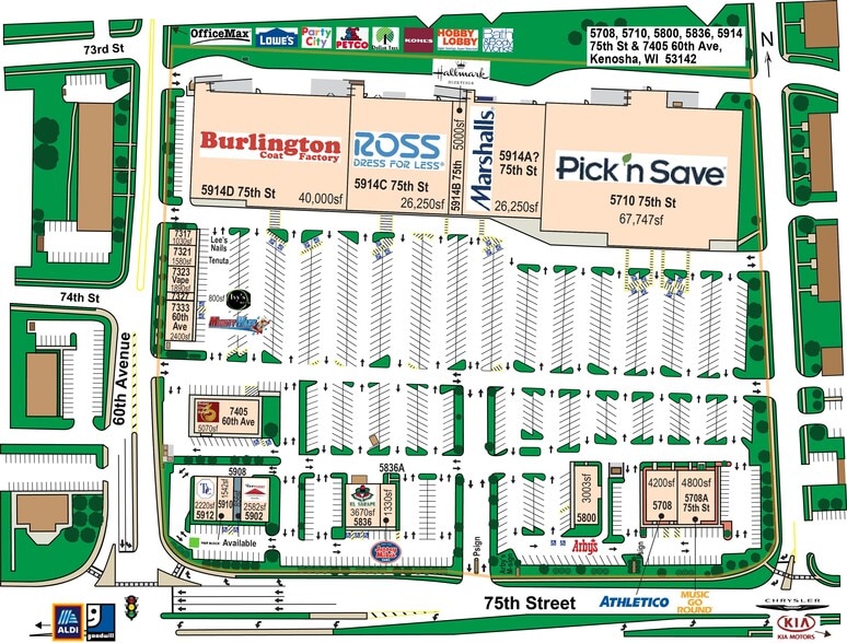 Plaza 50 5910-5960 75th St 856–14 856 pi² d'espace disponible • Commerce de détail • Kenosha, WI 53142