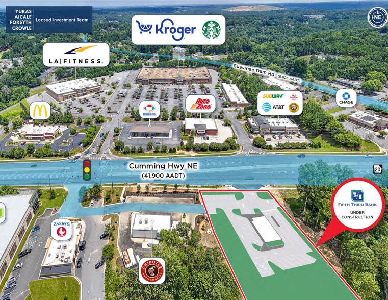 High-visibility and easily accessible location along State Route 20, Sugar Hill’s primary retail thoroughfare (41,900 AADT). Fifth Third Bank saw growth in key areas in 2024, including strong household and Southeast regional deposit growth, 17% growth in Wealth and Asset Management, and 30% year-over-year revenue growth in its Newline commercial payments platform. The five-mile radius serves an affluent and populous region of 141,196, with an average annual household income of $173,748 within one mile. Built in 2026, the 2,220 SF property is designed for Fifth Third Bank’s specific operational needs. Absolute NNN lease structure transfers maintenance and expense obligations to tenant, including roof, structure, and parking lot. Projected population and income increases within 1-, 3-, and 5-mile radii over the next five years poise this Fifth Third Bank and Sugar Hill for steady concurrent growth.