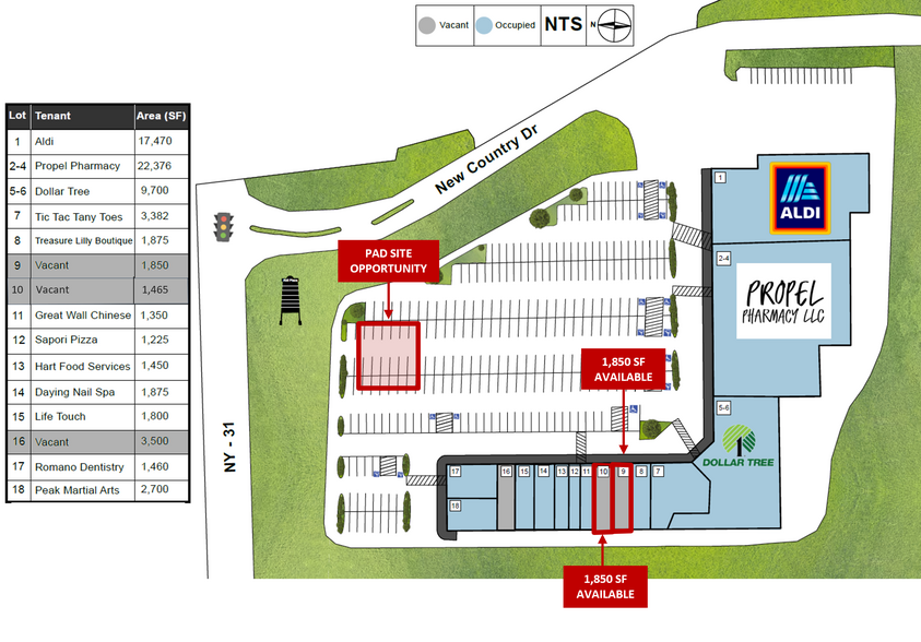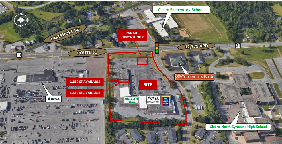 - Signalized access shared with neighboring Cicero-North Syracuse High School, walking distance from the plaza