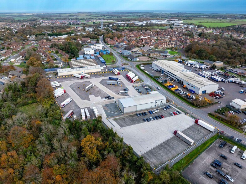 Available to let now! A rare opportunity for fleet, haulage, and truck-stop operators to secure a prominently located open-storage site moments from the A2 and the Port of Dover. Extending to 4.28 acres, the property comprises a predominantly level, regular-shaped yard surfaced with a combination of concrete and hardstanding, providing a versatile platform suitable for a broad range of operational uses. Onsite accommodation includes warehouse space, office facilities, a restaurant, and welfare amenities. The site is fully serviced with three-phase power, water, broadband connectivity, and benefits from external lighting, 3m-high security fencing, CCTV, and a SNAP-enabled parking system. The yard offers parking capacity for approximately 130 HGVs. The site benefits from unrestricted 24/7/365 consent for open storage and truck-stop operations, presenting an exceptional opportunity in this strategic South East logistics location.