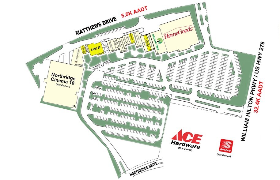 Un espace commercial à louer à Gator Investments était propriétaire de Northridge Plaza sur l'île Hilton-Head en Caroline du Sud. Northridge Plaza est ancré par HomeGoods, Dollar Tree et Northridge Cinema 10 (qui n'est pas détenu). Ce centre commercial +/-79.573 SF est situé du côté nord-est de l'île en face de l'aéroport international Savannah Hilton Head, à l'intersection de William Hilton Pkwy et Matthews Drive, dans le comté de Beaufort.