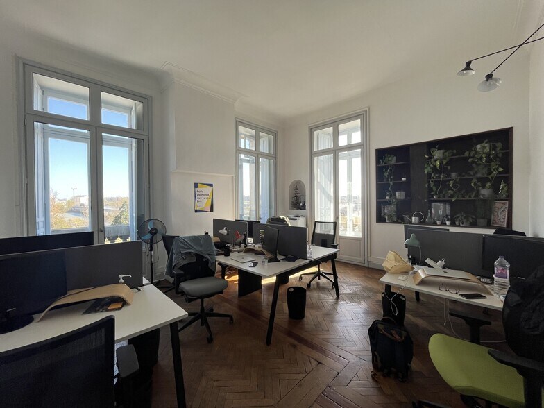 A proximité de la gare Saint Jean, RCG Bordeaux vous propose à la location une surface de bureaux de 95 m² environ au 3ème étage d'un immeuble ancien avec vue sur la Garonne. Locaux lumineux et câblés.