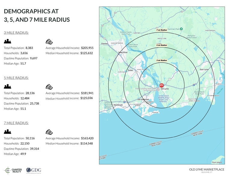- 102,500± SF grocery anchored shopping center located on the heavily traveled Route 1 in Old Lyme, CT.