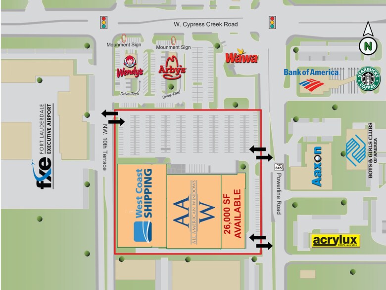 • Highly visible southwest corner of Cypress Creek Road and Powerline Road