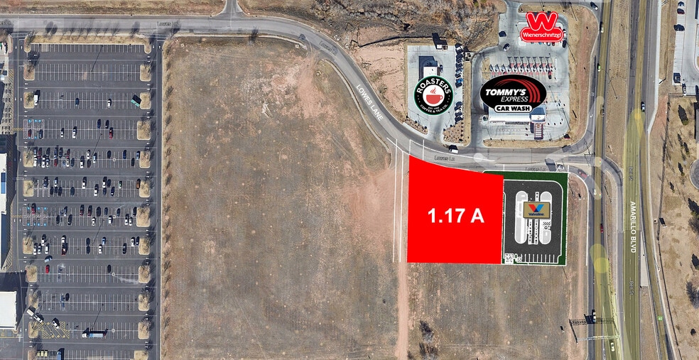 Highly visible ±1.00-acre pad site available for ground lease at the signalized intersection of Amarillo Boulevard and Lowes Lane in Amarillo, Texas. This site is positioned along one of Amarillo’s primary east–west corridors, benefiting from strong daily traffic counts, excellent frontage, and convenient access. The property is ideally suited for QSR or fast-casual restaurants, convenience retail, automotive service, medical or professional office, financial services, or other service-oriented commercial uses seeking high exposure and easy access. Surrounding development includes established retail, service users, and dense residential neighborhoods, providing a built-in customer base. With utilities available and generally level topography, the site offers flexible site planning and efficient development potential for a single-tenant user.