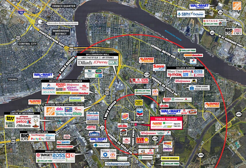 Towne Square Shopping Center 601 Terry Pky 1 200–31 149 pi² d'espace disponible • Commerce de détail • Gretna, LA 70056