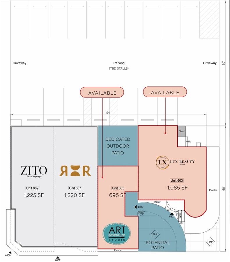 1,085 SF + Patio available for lease.