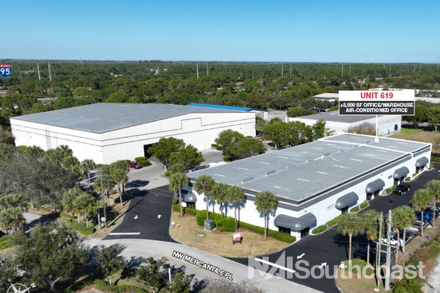 603–619 NW Mercantile Place offers a 5,000 SF unit available for lease. The space features warehouse area with office buildout for flex use and customer-facing functions. Unit 619 includes an air-conditioned office space and two rear-facing roll-up doors in the warehouse for easy storage, distribution, or service operations. Zoned for warehouse industrial uses, the property is ideal for distribution, service industries, light manufacturing, and specialized trades. Its design allows tenants to combine operational efficiency with on-site customer access. Located just minutes from I-95, the property provides excellent connectivity across the Treasure Coast and South Florida. With Port St Lucie’s steady growth and rising demand for industrial services, 603–619 NW Mercantile Place offers a strategic and functional base of operations. Address: 603-619 NW Mercantile Place, Port Saint Lucie, FL 34986 Lease Price: $20.00/SF Gross Total Finished Area: ±22,500 SF Available Spaces: Unit 619 - 5,000 SF Zoning: Warehouse Industrial Municipality: Port St. Lucie Roll-Up Doors: 12’x12’ Ceiling Height: 20’