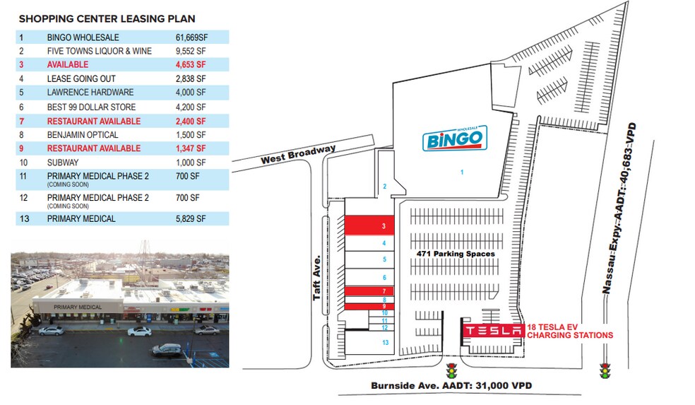 Rejoignez BINGO Kosher Supermarket Situé sur l'avenue Burnside très fréquentée, avec plus de 33 000 véhicules par jour. Itinéraire de banlieue pour Rockaways et l'aéroport JFK. Situé directement à l'angle de l'autoroute de Nassau avec plus de 46 000 véhicules par jour. 471 Places de stationnement.