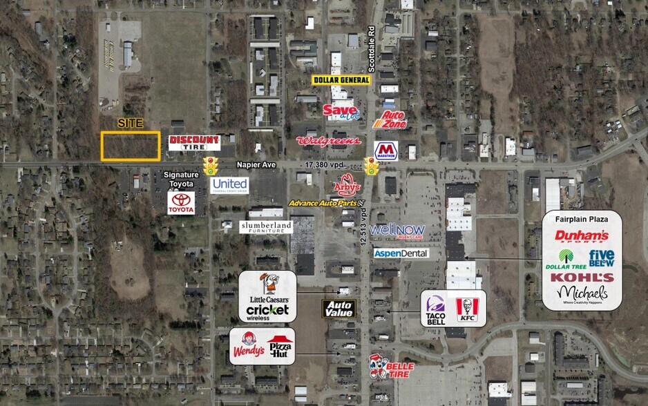 • Terrain vacant situé sur E. Napier, à l'ouest de la M-139 et en face de Signature Toyota.