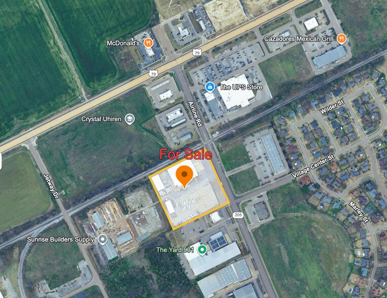 This 4.8+ acre fenced commercial property features automated gates, was renovated in 2022 with upgraded fire suppression, a new Duro-Last roof (15-yr warranty), and new warehouse heaters. It includes three multi-person offices, two cranes, two truck ramps, one dock leveler, rail spur access, and a commercial security camera system. It is the only light-industrial property available on Airline Rd.