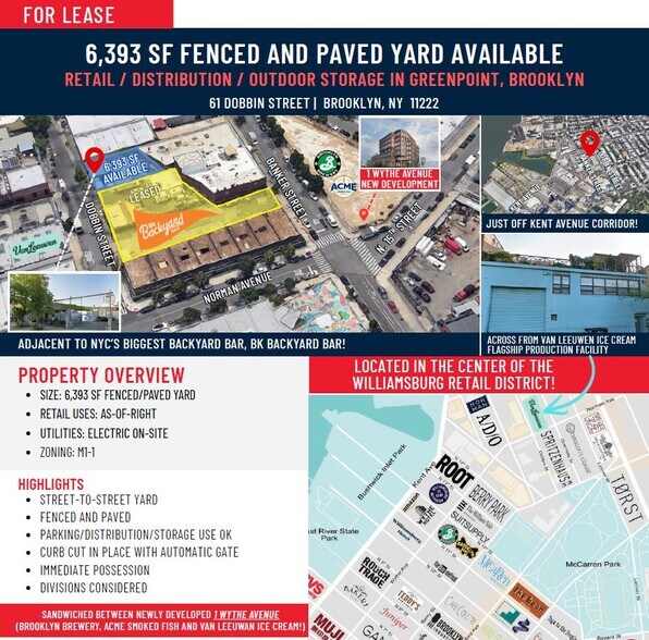 RETAIL / DISTRIBUTION / OUTDOOR STORAGE IN GREENPOINT, BROOKLYN. LOCATED IN THE CENTER OF THE WILLIAMSBURG RETAIL DISTRICT!