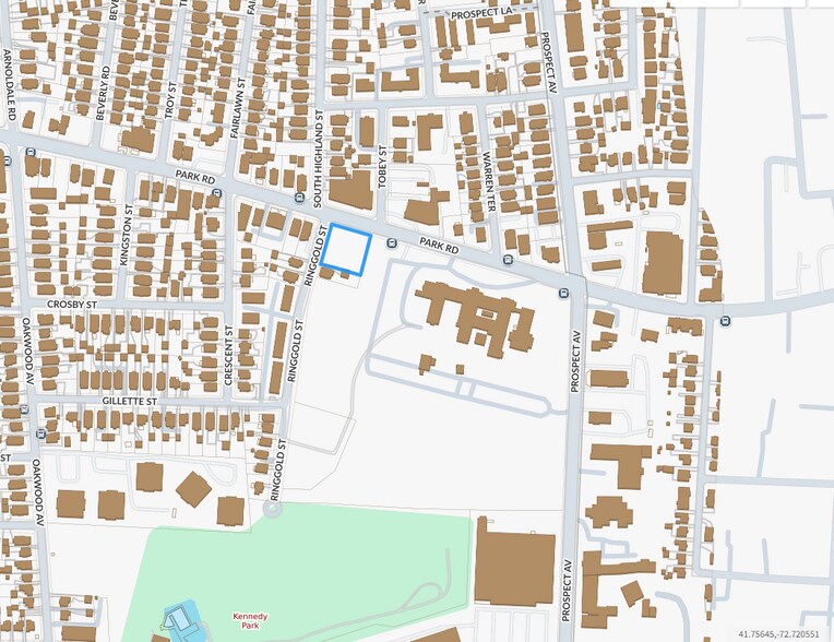 - Prime signalized corner location at Park Road and Ringgold Street in West Hartford, a major gateway between West Hartford and Hartford