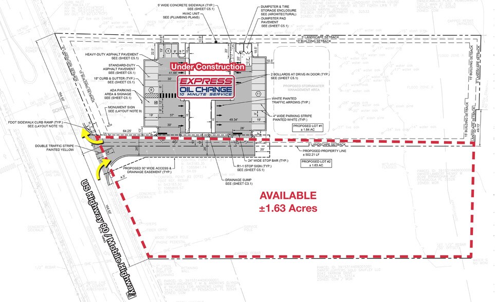 - Outstanding development opportunity to locate next to an Express Oil Change (under construction) in one of Pensacola’s expanding retail corridors
