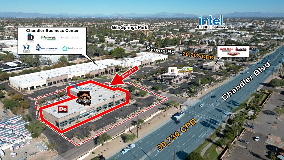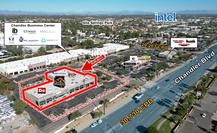 West Chandler Business Corridor Vicinity: Anchored by Intel’s Chandler campus 1-mile to the east of the Property, the West Chandler Business Corridor is a major local area daytime population attraction. In the 3-mile radius of the property, there are 5,186 businesses with 56,881 employees.