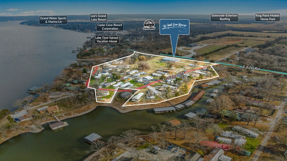 Sands Investment Group is pleased to exclusively offer for sale the 10.95-acre Walnut Cove Resort, located at 61800 E 262 Loop N 27 in Grove, OK. This premier lakefront community features 33 tenant-owned homes, 8 RV sites (50-amp), 1 cabin, 23 boat slips, and 10 indoor boat and RV storage units. The RV sites are operated on a seasonal basis (six months per year), while the boat slip agreements are structured on a 12-month basis, creating a diversified and stable income stream. This offering represents a compelling investment opportunity with strong demand drivers and long-term upside.