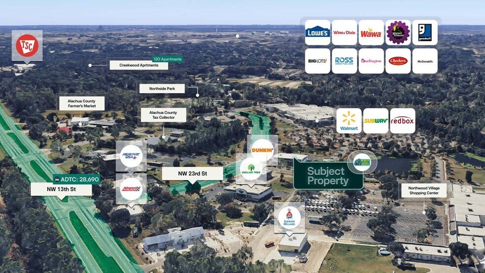 Mavis Discount Tire 6190 NW 23rd St 8 071 pi² 100% Loué Commerce de détail Immeuble Gainesville, FL 32653 4 857 572 $ CAD (601,86 $ CAD/pi²) 5,25% Taux de capitalisation
