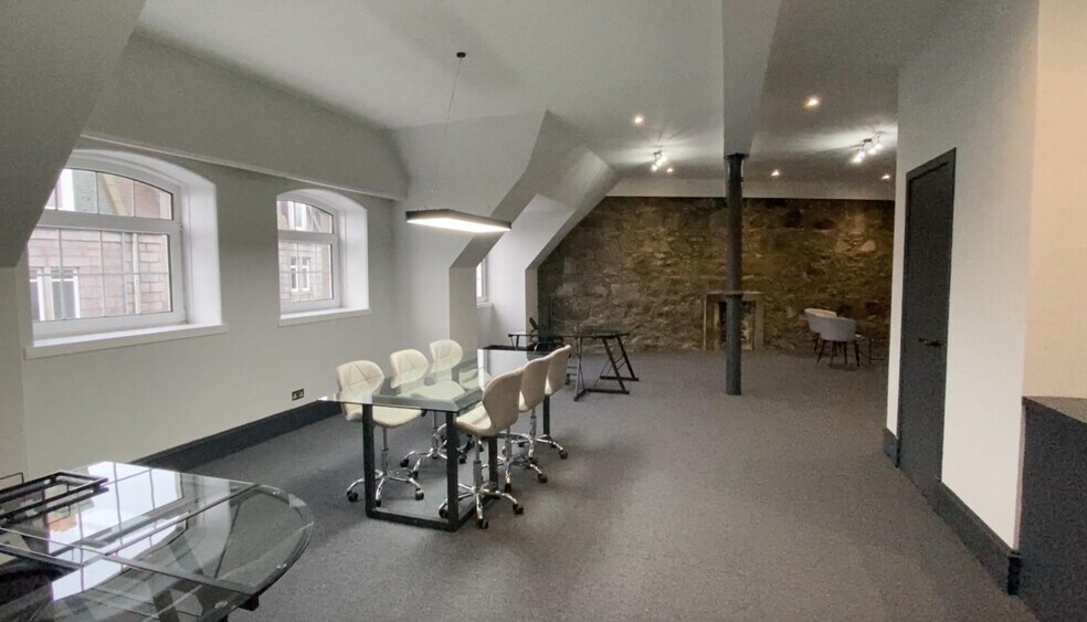 The subjects are of three storey to the front and two and a half storey design to the rear. The building is of traditional granite and slate construction incorporating dormer projections of similar construction to the front elevation and numerous velux windows to the rear pitches. Access to the office area is via a timber and glazed recessed door leading to a common stairwell to access the suite itself. The office provides open plan office accommodation that has been finished to a good standard with the floor being carpeted, plaster and painted walls, lighting by means of spot and strip lighting and heating via electric heaters. W.C and tea preparation facilities are located within the common stairwell.