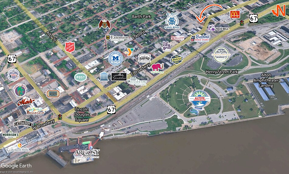 9,100 SF of retail/restaurant space available at the ground level of the Wedge Innovation Center. An additional 1,500 SF professional office suite available on the third floor. Both retail suites offer tremendous visibility to the tenants occupying the center as well as E Broadway. Tenant improvements negotiable. Suite 600-602: 1,972 SF retail/restaurant: located at the corner of Henry St and E Broadway is built out for immediate retail use. Space for future kitchen in rear. 2 ADA restrooms within suite. Suite 622: 7,128 SF retail/restaurant: located at the corner 3rd St and E Broadway is also built out for immediate retail use. 2 ADA restrooms within suite. Suite 302: 1,500 SF Open office suite Located in downtown Alton, across from the new Lucas Row mixed use development site and two blocks North of Riverfront Park and Alton Amphitheater. Multiple restaurants and amenities within walking distance. Alton is 20 miles from downtown St. Louis, MO and 14 miles from downtown Edwardsville, IL.