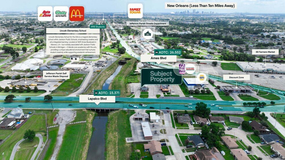 Surmount is pleased to present the exclusive listing for a New Orleans Original Daiquiris located at 6240 Lapalco Blvd, Marrero, LA 70072. The site consists of roughly 1,703 rentable square feet of building space on an estimated 0.52-acre parcel of land. This New Orleans Original Daiquiris is subject to a 20- year Triple Net (NNN) lease, which commenced 7/2/2024. The current annual rent is $83,959 and has scheduled increases of 3.00% Annually starting in 2030.