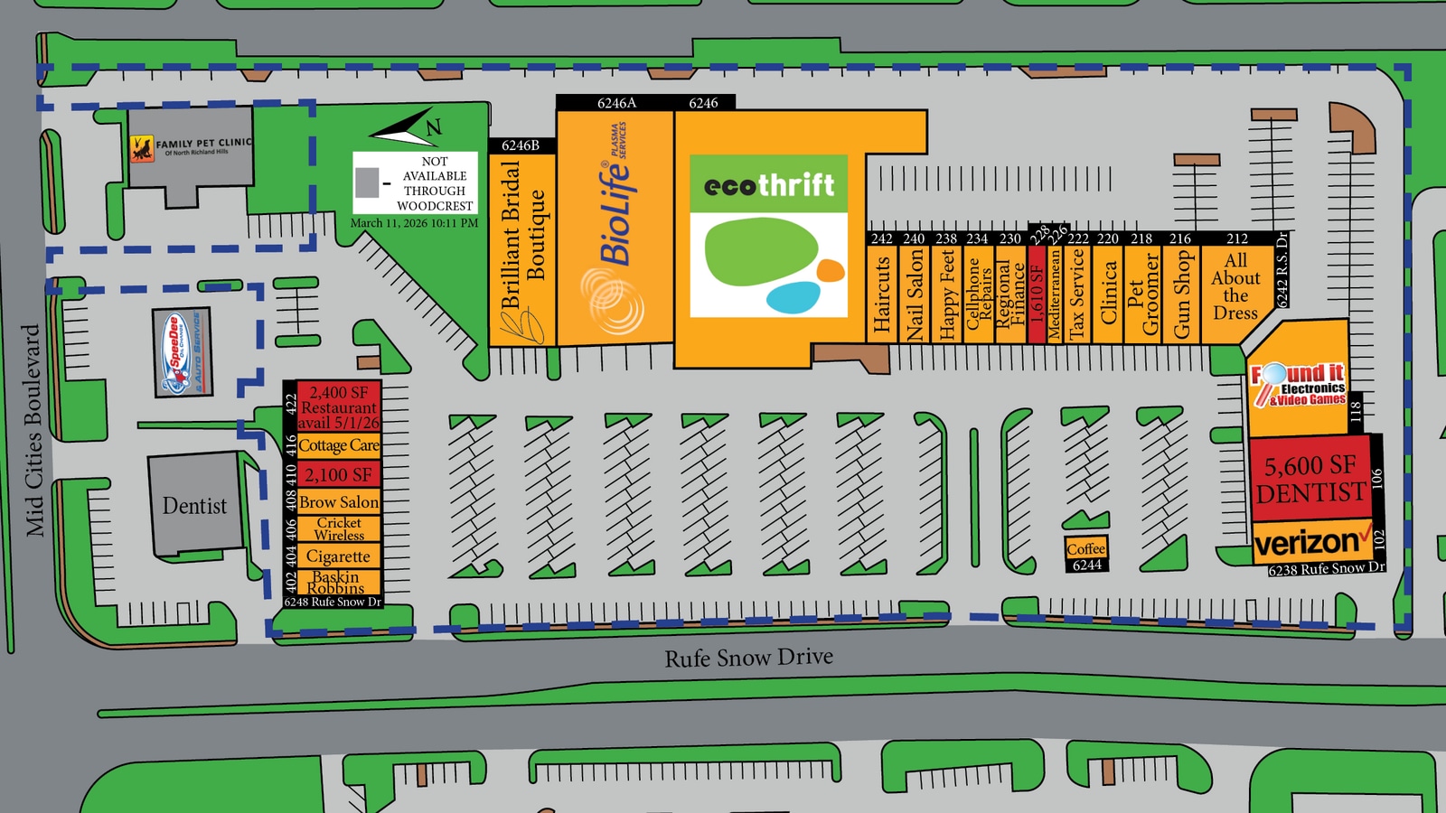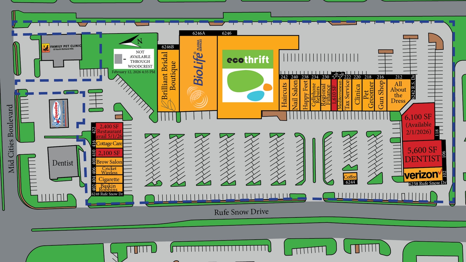 - Co-locataires éclectiques, dont Eco Thrift, Baskin-Robbins, Anglers Pro Teckle, BioLife Plasma, Brident Dental, 151 Coffee, plusieurs salons, et plus