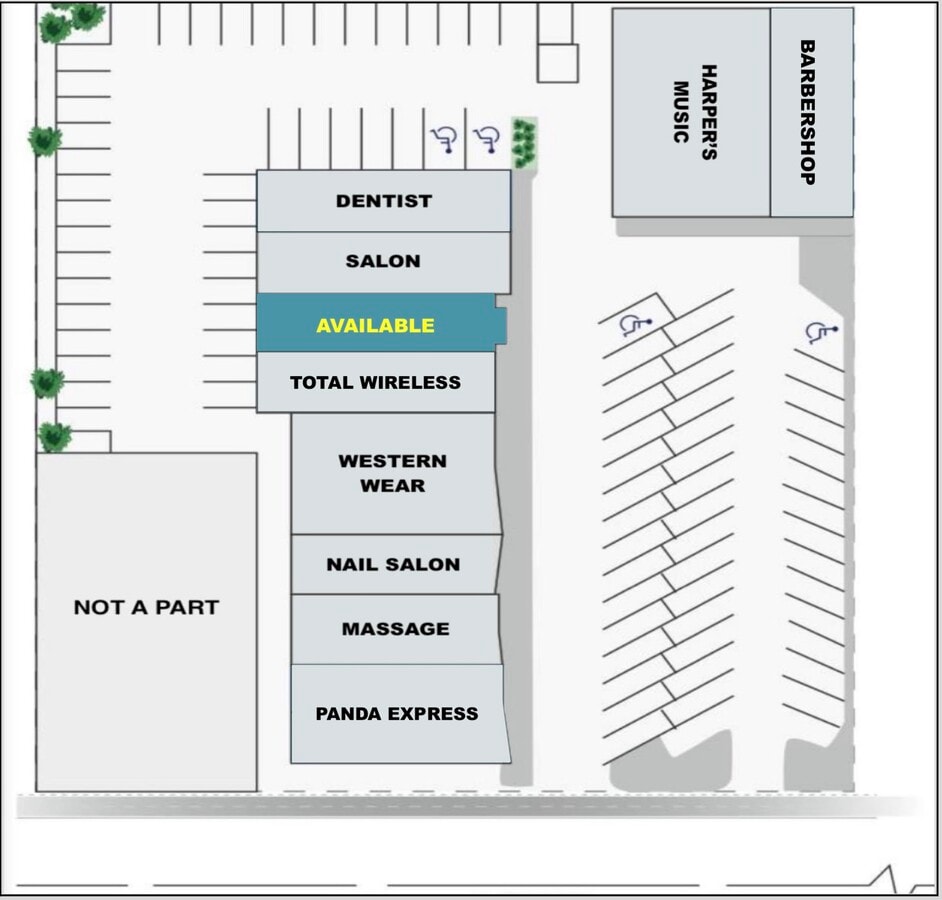 - Situé en ligne avec d’autres commerces de détail