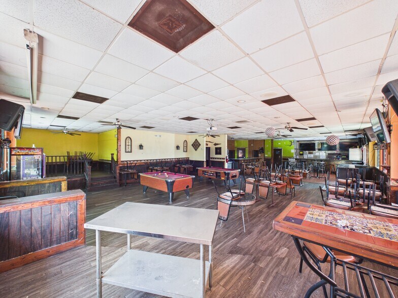 Free standing restaurant with ample parking. Complete with Kitchen, dinning tables, walk-in cooler.