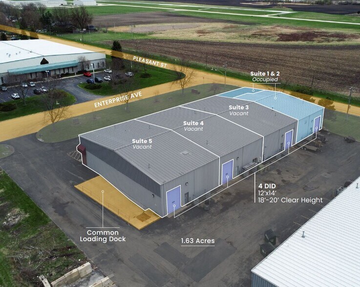 Currently 25% occupied, this property presents a strong value-add opportunity for investors or owner-users looking to lease-up or expand. Offered at $1,395,000 or $7.50/SF base plus $1.98/SF EST CAM, 633 Enterprise Ave offers strong functionality in a growing market area minutes from I-88 and major regional employers.