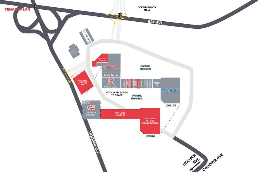 • Accès aux intersections signalisées de l'avenue Hooper et de l'avenue Caudina et de la route 571 • Adjacent au pavillon Seacourt et au centre commercial Ocean County. • 25 724 voitures passent chaque jour à cet endroit. • Augmentation du nombre de visiteurs estivaux attribuable au tourisme balnéaire. • Le site en question est entouré de locataires nationaux HomeGoods, Marshall's, Ashley Home Store et plus encore. • Une nouvelle clinique ambulatoire de 68 000 SF Veterans est maintenant ouverte, contiguë au pavillon Seacourt, le long de l'avenue Caudina, à côté de l'avenue Hooper