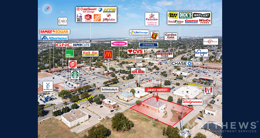 - Situé à l'intersection éclairée de la rue N Beach et du boulevard Western Center, sur l'une des routes les plus fréquentées de North Fort Worth