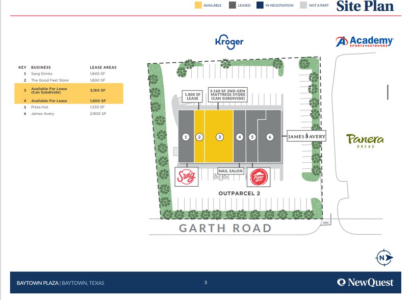 L'édifice est situé au cœur du plus récent corridor de vente au détail de Baytown, dans un centre commercial ancré par Academy, Petsmart, Ulta et Marshal's.