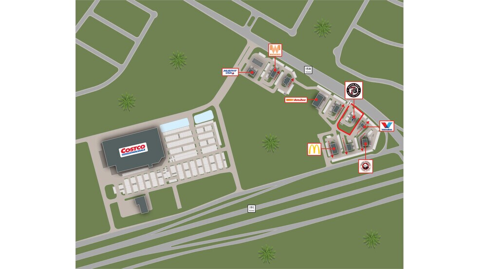 - High-Traffic Retail Corridor Located on West Hwy 158 (20,000+ VPD), with Immediate Connectivity to SH 191 (51,000+ VPD)