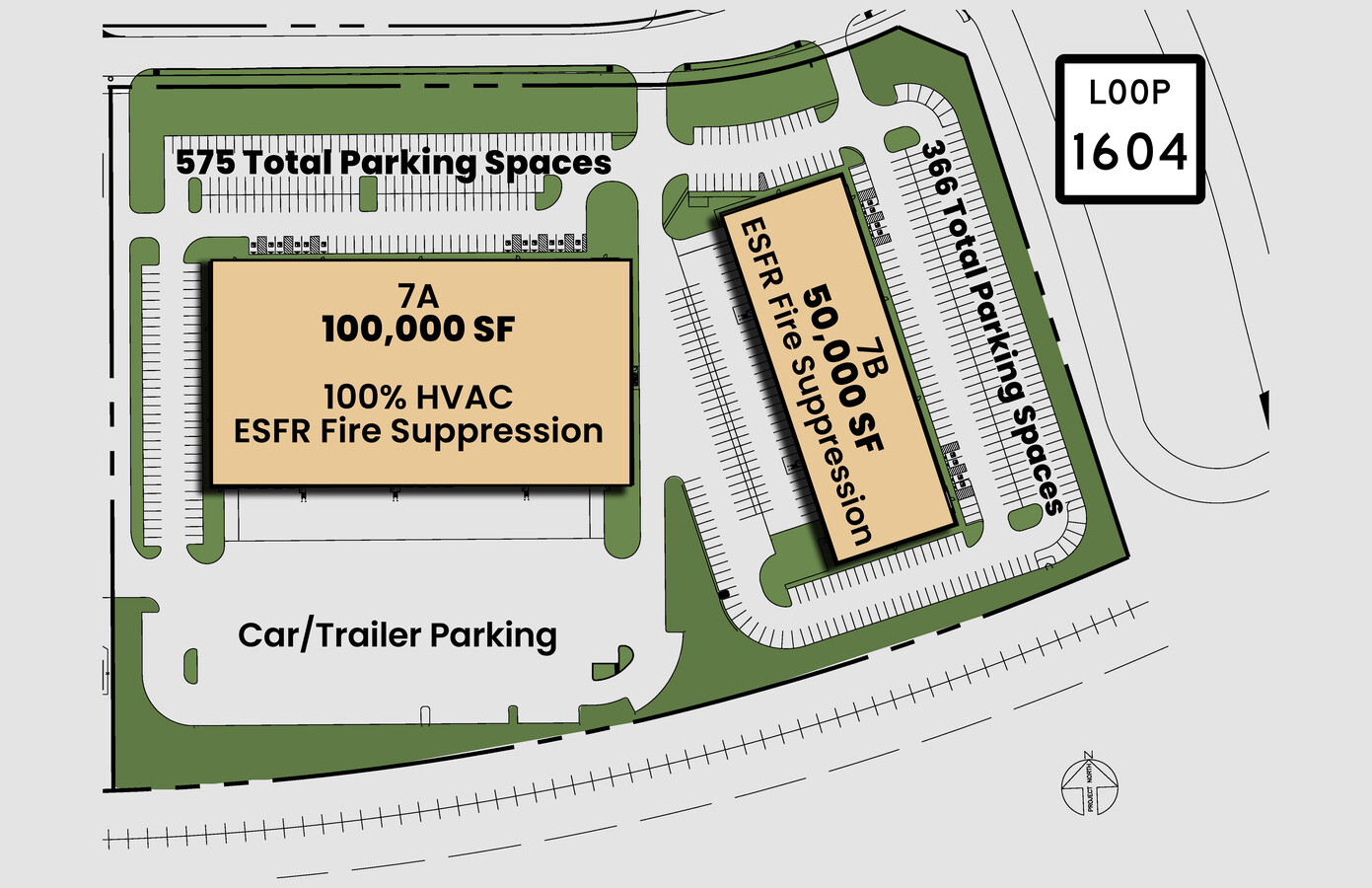 - Building 7B features 50,000 square feet, an R-30 insulated roof deck, heavy power and plumbing, and expansion potential for up to 23 dock doors.