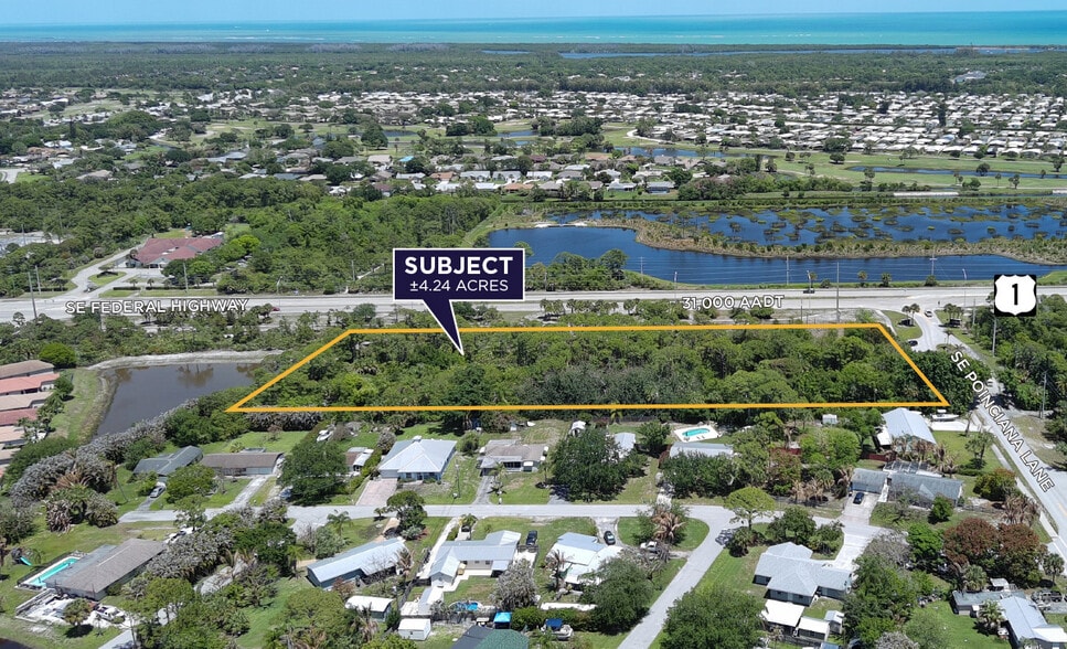 One of the last remaining large, high-profile corner sites along highly desirable SE Federal Highway, this exceptional tract presents a rare opportunity for development in a proven growth corridor. The property features approximately 585 feet of prominent U.S. Highway 1 frontage, complemented by existing turn lanes that allow for convenient, safe, and efficient access. The surrounding area is well-established and visually appealing, benefiting from rising traffic counts, strong demographics, and continued commercial and residential momentum along the Federal Highway corridor. Ideally positioned near the amenities, employment centers, and coastal communities of Stuart, Hobe Sound, and northern Palm Beach County, the site offers excellent regional connectivity. Flexible zoning supports a wide range of commercial and residential uses, making this property well suited for a variety of development concepts.