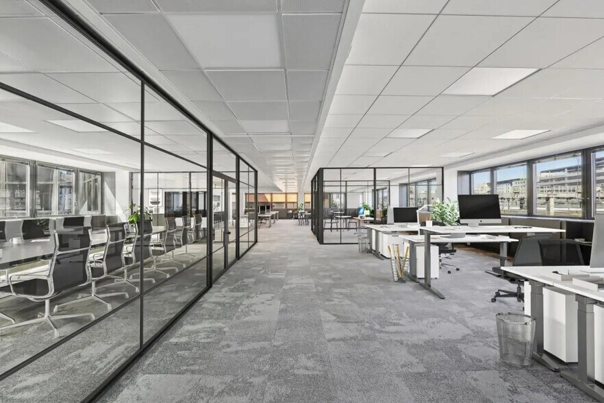 Les surfaces proposées offrent une grande modularité, avec des plateaux divisibles dès 112 m² et pouvant atteindre plus de 3 000 m² sur plusieurs niveaux. Plusieurs configurations sont disponibles : plateaux entièrement rénovés à cloisonner selon les besoins, ou surfaces déjà cloisonnées et fonctionnelles pour une installation immédiate. Les bureaux bénéficient d’une excellente luminosité grâce à de larges ouvertures et des volumes bien répartis, permettant un environnement de travail agréable et facilement personnalisable. Les prestations techniques incluent un faux plafond, un éclairage LED récent, une climatisation réversible et des plinthes périphériques assurant une bonne distribution des réseaux.