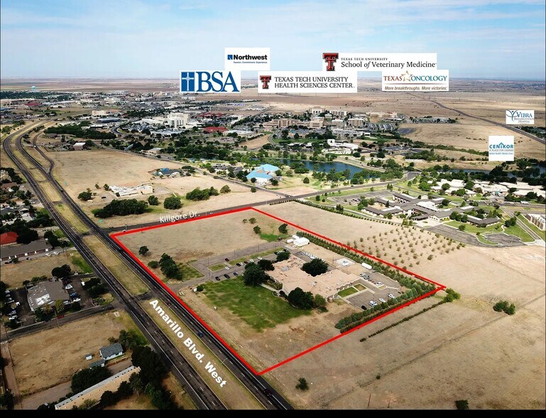 Situé à l'intersection de W. Amarillo Blvd. et Killgore Dr. dans le Harrington Regional Medical Center, qui abrite l'hôpital BSA, l'hôpital Northwest Texas, et juste en face de Coulter, près du Texas Tech University Health Sciences Center à Amarillo et de la Texas Tech University School of Veterinary Medicine. L'accès et la visibilité sont idéaux. Amarillo, Texas, se trouve au cœur du Texas Panhandle et est la 14e plus grande ville de l'État. Elle constitue le centre d'activité économique du Texas Panhandle et des comtés environnants. Les industries florissantes incluent le pétrole et le gaz, la transformation du bœuf, les produits laitiers, l'agriculture, l'aviation et l'aérospatiale, la bioscience, et bien plus encore.